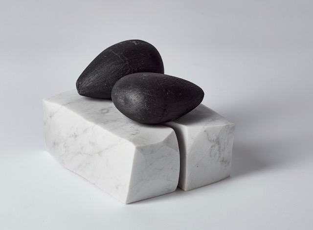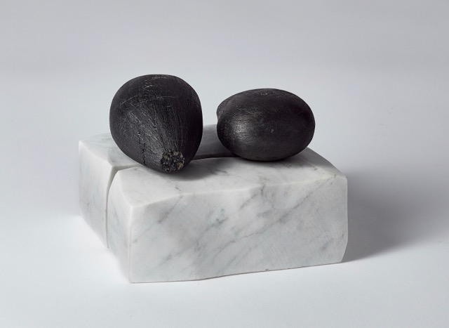 Materials: palm oil kernels - coal ice - carrara marble assemblage Size: 17cm x 14cm x 13cm 2 palm oil kennels: 10cm x 7cm x 6cm 2 ice piece: 17cm x 7cm x 7cm Price: €1,200 P&P: Delicate piece - Please call to arranged (delivered or couriered)